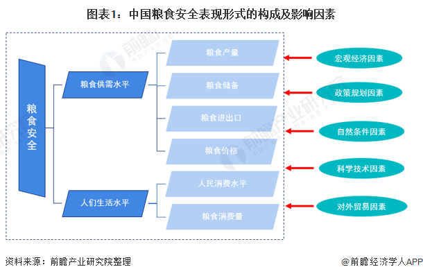 本文核心数据:中国粮食安全表现形式的构成及影响因素、中国GDP走势图、粮食安全政策