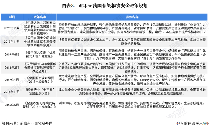 为了应对潜在可能发生的粮食安全问题,保障粮食的安全,我国出台了一系列相关的政策。