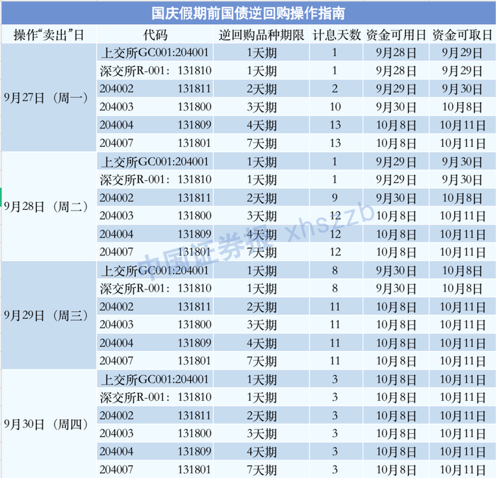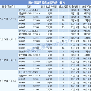 国庆长假越来越近了,怎么做国债逆回购交易最合适?中证君制作了一张表格,供大家参考。