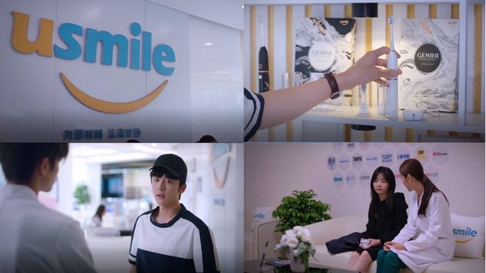 女主角李尖尖(谭松韵饰演)爱吃甜食,从小牙齿不好却又害怕去医院,大哥凌霄(宋威龙饰演)长大后成为了高端私立口腔医院usmile的一名牙医,小哥贺子秋(张新成饰演)提醒妹妹用usmile电动牙刷刷牙时用呵护模式,在日常生活中守护妹妹的口腔健康。usmile的品牌和产品与剧情完美融合,不但没有破坏电视剧的整体观感,还加深了观众对品牌的印象。
