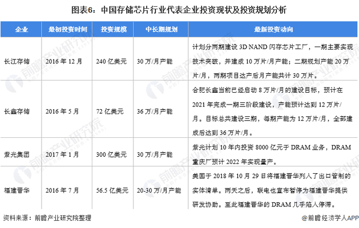 存储芯片行业代表性企业最新投资动向