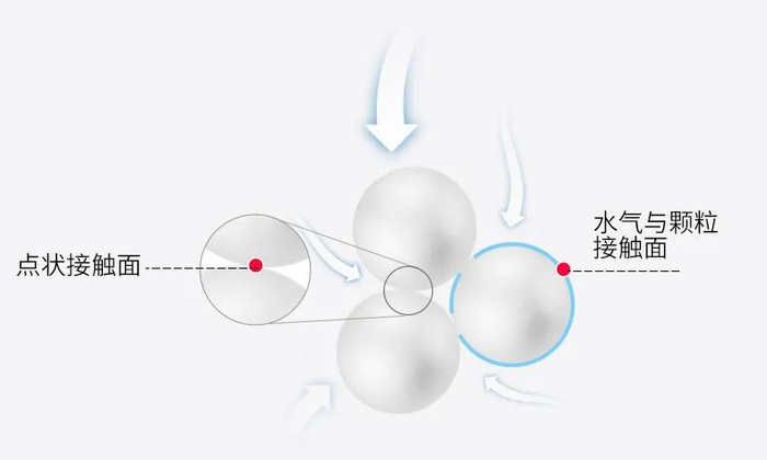 呈圆球状的氯化钙,颗粒间点状接触,与空气的接触面积大,让氯化钙发挥最大程度的使用效率。