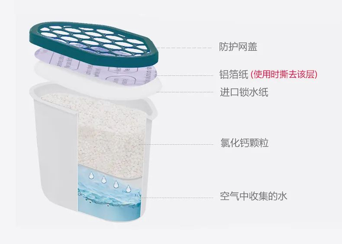 这款除湿盒采用物理除湿技术,精选高品质氯化钙作为吸湿原料。