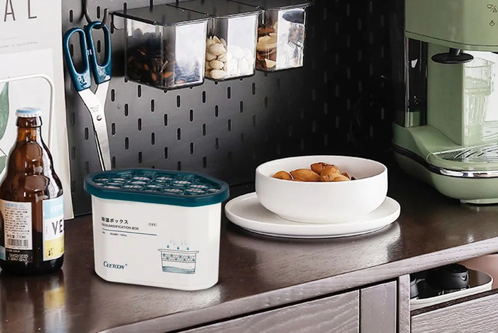 可以摆在客厅、卧室、厨房,或是衣柜、鞋柜、书柜等封闭空间,除湿盒的效果会更好!