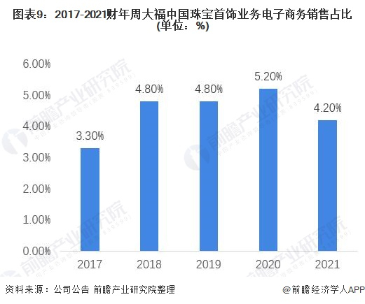 从销售渠道来看,周大福大力开发电子商务渠道,持续深化与天猫、京东、唯品会等多个中国内地知名电商的合作,借此开拓市场。近年来周大福电子商务渠道销售收入占总营业额比重约为5%,未来随着渠道日趋成熟,占比将进一步提升。