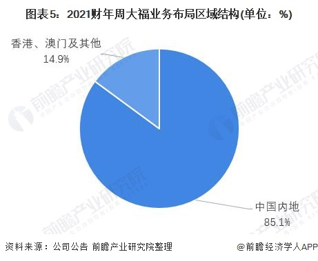 尽管周大福为港资企业,但其业务发展重心在中国内地。2021财年周大福中国内地营业收入占总营业收入比重达到85.1%。