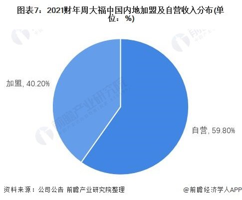 截至2021年3月31日,周大福在全球共拥有门店4591家,其中35.1%为自营门店,64.9%为加盟门店。加盟门店数量较多,但2021财年加盟渠道在中国内地实现的营业收入却仅占内地总营业收入的40.20%,主要营业收入来源于自营门店。周大福这种自营为主、加盟为辅的商业模式,能够帮助其在快速打开二、三线城市市场的同时维护良好的品牌形象。