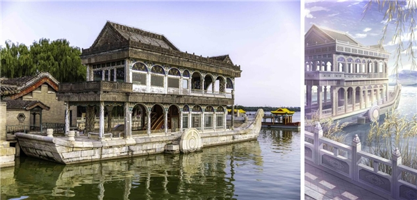 (清晏舫实拍&《恋与制作人》游戏场景图)