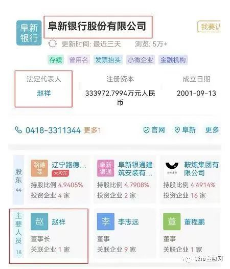 目前,阜新银行的法人代表、董事长赵祥。