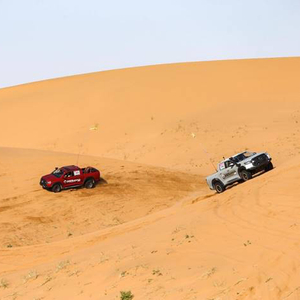 车轮扬起黄沙,乘风破浪般上下穿梭,留下一道道转瞬即逝的印迹,沙山沙丘、风蚀洼地、剥蚀山丘、湖泊盆地交错分布,巴丹吉林的美景在浮光掠影中留下永恒的片段,唤醒选手们血液里涌动的野性和激情,勇往、热血、执着伴随着现场引擎的轰鸣声就此释放澎湃的心声,用霸气和无畏描绘出沙漠里一道亮丽的风景线。
