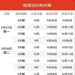 需要特别注意得是,不要等到节前最后一个交易日9月30日再做逆回购,那样就拿不到假期利息“大礼包”。