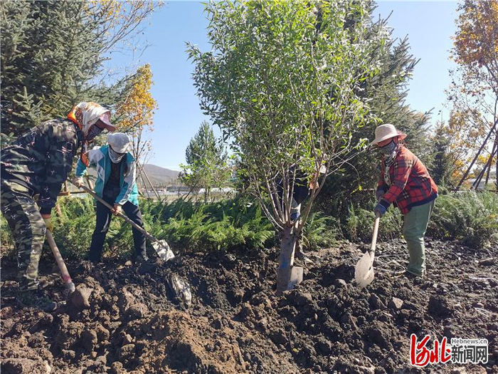 9月27日上午,崇礼区村民在奥运核心区凤凰路旁的补植现场,补植树木。郭晓通摄