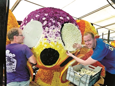花车游行组委会主席Jos Jochems介绍,花车评审来自于专家和大众的打分,花车的主题概念、造型设计、艺术效果是评审考核的几大重点。组委会倡导各团队在设计主题时放眼全球,关注社会问题和世界文化、时政,鼓励大家在花车制造过程中使用大丽花原本的色彩,染色花越多,评分将越低。除了花车的观赏性,表演性、互动性、音乐和声音效果也是构成艺术效果的主要元素。