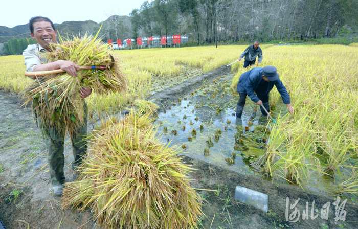 2021年9月25日,山西省灵丘县下关乡上关村有机水稻产业园水稻喜获丰收。河北日报记者杜柏桦摄影报道