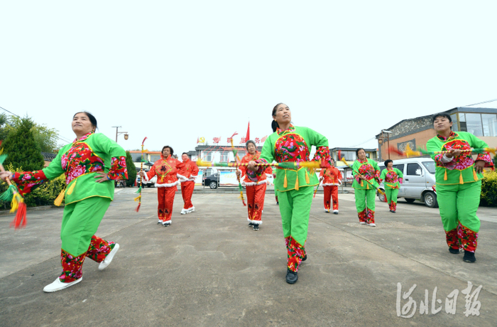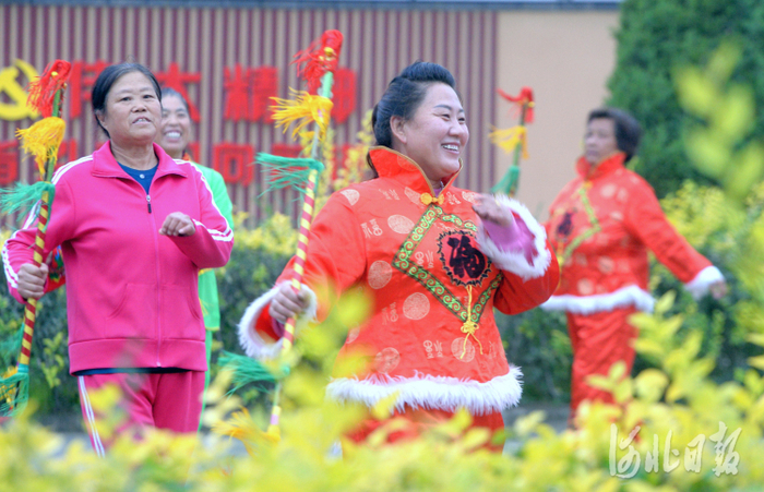 2021年9月24日,山西省灵丘县武灵镇黑龙河村村民,在文化广场上跳起了秧歌舞。黑龙河村为城乡接合地带。该村文化底蕴深厚,文化气息浓郁,建有音乐喷泉、民俗博物馆、乡风古韵一条街、文化广场(舞台)等文化娱乐设施,丰富了村民文化生活。黑龙河村被评为“全国综合减灾示范社区”“山西省卫生示范村”“大同市美丽乡村”。河北日报记者杜柏桦摄影报道