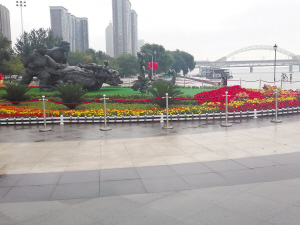 改造后的闯关东广场。本报讯(记者 霍亮文/摄)记者从园林部门获悉,道外区沿江公园一期改造工程将于国庆节前全面完工。改造后将新增百米动感光幕秀场,江畔路从青年宫到道外七道街路段改为步行街,机动车禁行。