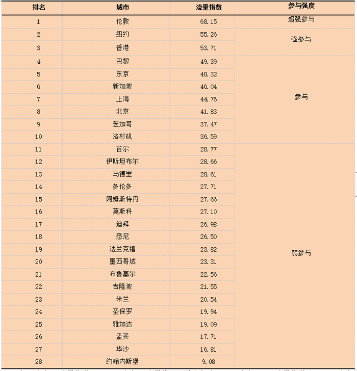 1、伦敦全球城市资源要素流动参与强度最高