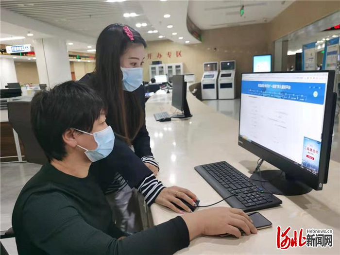 9月23日,固安市民服务中心内,工作人员正在指导办事群众通过网上平台办理业务。通讯员周禹佳摄