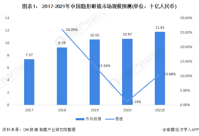 近年来,隐形眼镜的便利使得其市场规模逐年增加,根据GfK数据显示,2020年隐形眼镜销售额达到106.7亿元,同比上涨1.14%,受到疫情的影响,增速较2019年下滑。到了2021年,GfK预计,我国隐形眼镜的市场规模将增长10.68%,达到118.1亿人民币,反映出市场潜力巨大。
