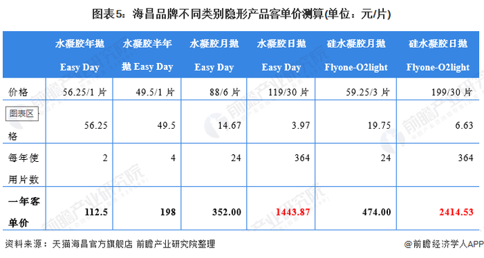 以海昌品牌为例,当每个从消费水凝胶年抛转变为消费硅水凝胶日抛的消费者,其年平均消费额将有十倍提升空间。