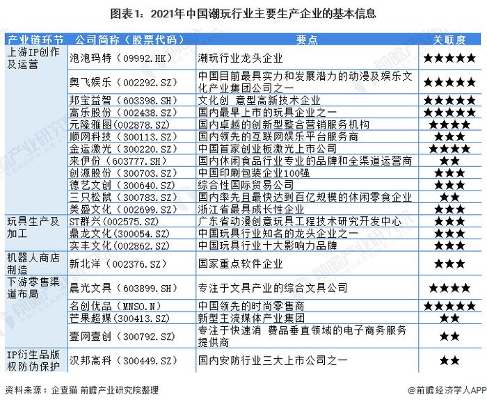潮玩产业主要上市公司:泡泡玛特(09992.HK)、名创优品(MNSO)、奥飞娱乐(002292.SZ)