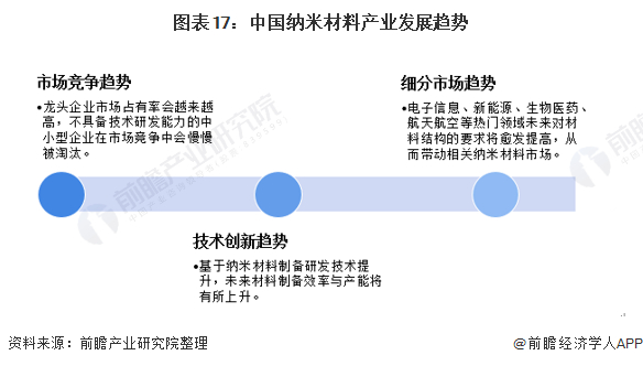 前瞻基于上述细分市场与竞争格局分析,结合目前中国纳米材料产业技术创新情况,归纳该产业三大发展趋势如下:
