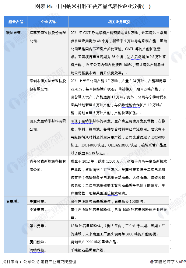 在竞争方面,目前中国纳米材料产业市场参与者众多,市场较分散,但由于纳米材料产业存在资金和技术壁垒,因此布局的企业大多拥有资金优势或技术优势。企业大多专注特定赛道,如碳纳米管赛道的天奈科技、石墨烯赛道的第六元素等。