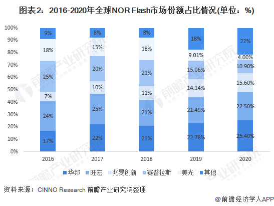 原标题:2021年全球NOR Flash行业市场竞争格局与发展趋势分析 大陆企业向中高端产品进发 来源:前瞻产业研究院