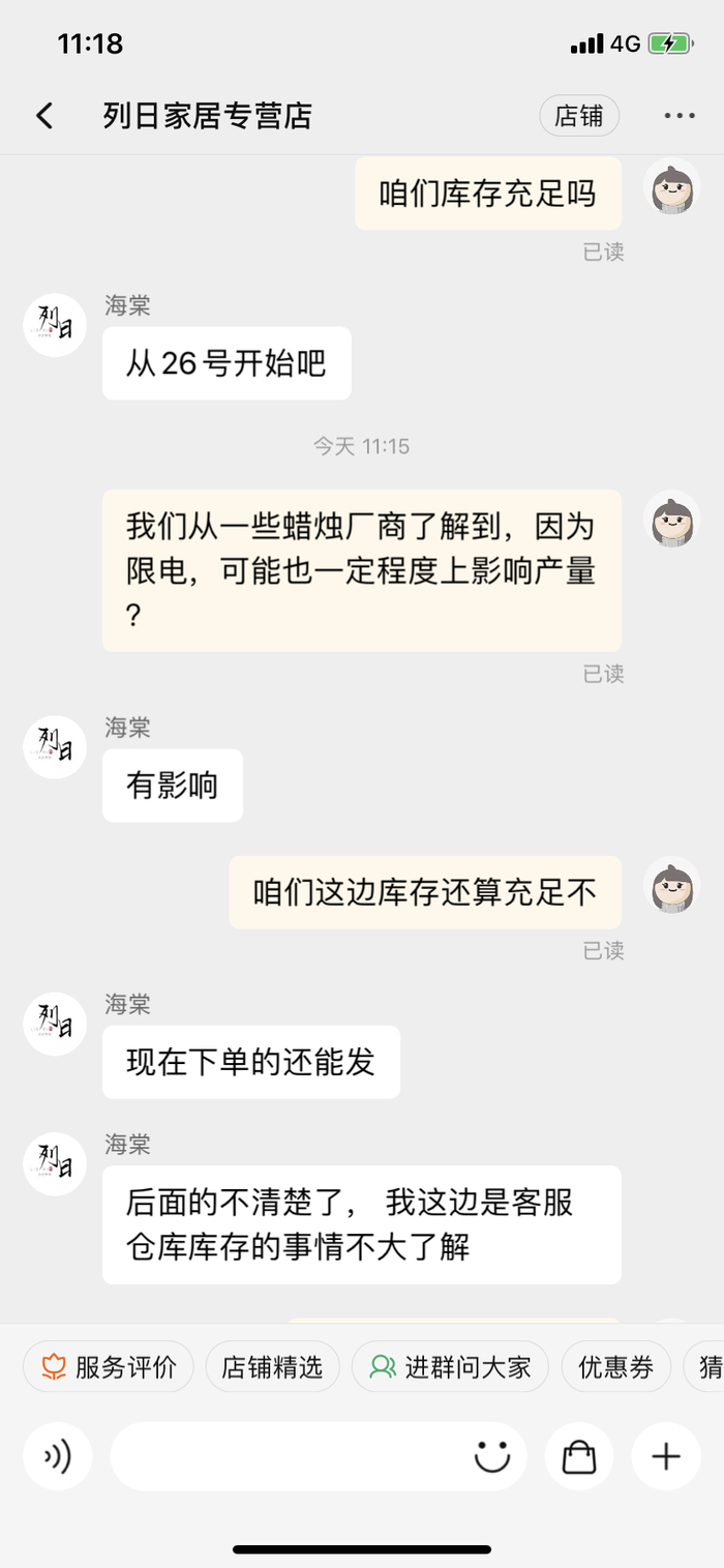 “从26号开始,我们照明蜡烛的订单量大增,10倍增长是有的。用户基本都是(来自)东北三省,上海、北京还有其他地区(用户)也开始购买了。”9月28日上午,浙江金华一家蜡烛销售商的客服人员告诉记者。