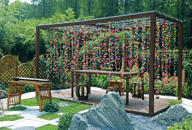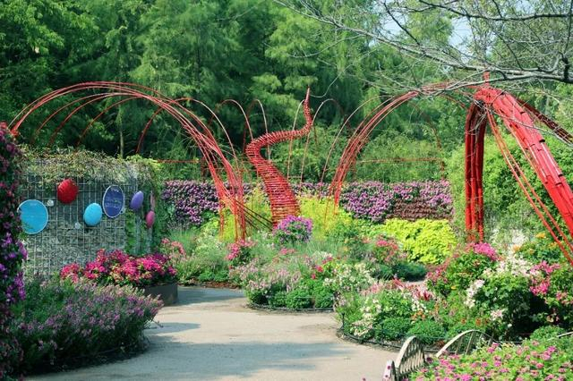 “花园梦”版块以14组风格迥异的中外庭院和2组主题景点、全园垂吊花卉布置为特色,同时在道路沿线花坛、花境、花台进行秋日花卉布置,以菊花、向日葵、一串红、醉蝶花等秋季花卉,打造富有观赏性、艺术性的秋日花园。