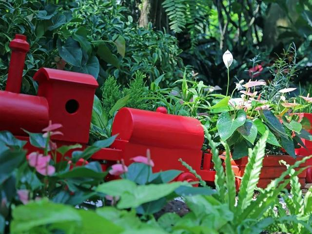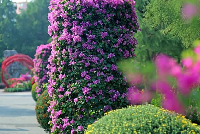 此外,绿化示范区的三角梅花柱阵列与植物大楼广场的三角梅爱心造型组合,都是绝佳的拍照打卡点。