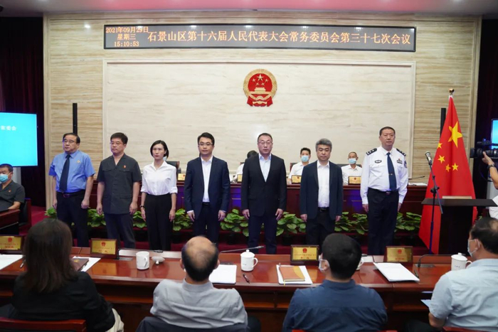 9月29日下午,石景山区第十六届人民代表大会常务委员会召开第三十七次会议。区人大常委会主任李文起主持会议。区长李新列席会议。