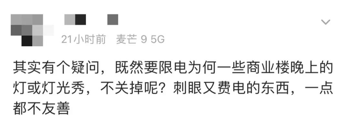 同样是几天前,随着哈尔滨多家商场因限电宣布闭店时间提前的消息冲上微博热搜,不少人提出质疑,一边是东北三省因电力供应不足而造成的限电,一边却是多个城市大面积、长时间的灯光秀所带来的用电。随着越来越多省市被卷入“限电潮”当中,灯光秀是否需要先停一停?