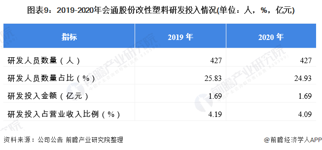 ——改性塑料研发投入情况:2020研发投入与2019年持平