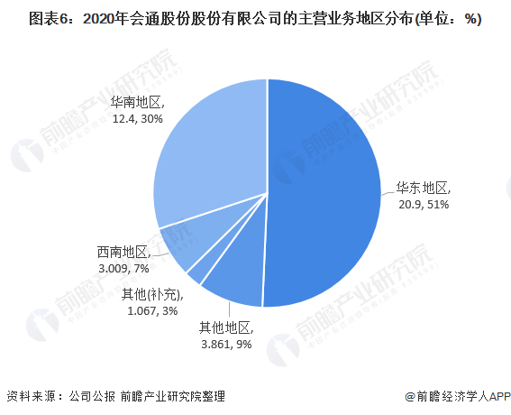 从销售区域来看,会通股份销售收入主要来源于国内市场。具体来看,华东地区营业收入为20.9亿元,占总营收的比重超过50%;华南地区为会通股份第二大销售市场,华南地区实现的销售收入为12.4亿元,占总营收的比重为30%。