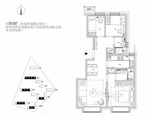 相当于北向的面宽拉大了,挤出了一个小书房的位置,南北面宽非常相近了。