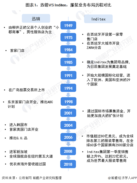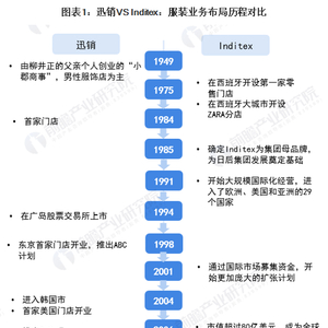 迅销和Inditex集团均属于全球的第一梯队的快消服装零售企业,迅销和Inditex集团的快消服装行业发展历程如下: