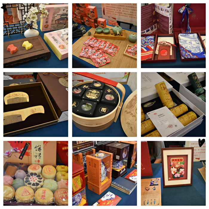 活动现场,来自全省各地的伴手礼同台竞技,琳琅满目。世界级非遗、国家级非遗、江苏省非遗、江苏老字号、江苏精品,加上企业代表生动的现场讲解,让人目不暇接。具有百年历史的无锡三凤桥传世酱排骨、传统工艺与现代技术相结合的阜宁大糕、来自溧阳的天目湖富子白茶、苏州仁昌顺的定胜绿豆糕、“一碗面一座城”的镇江锅盖面、浓郁透亮清香四溢的南京雨花茶、纯手工灌制的精品香肠、采用古法酿造的镇江恒顺醋、乾生元的一碗“書”州面、镇江味道三怪礼盒,为观众呈现了一场江苏特色美食盛宴;历史悠久的徐州凤鸣塔泥池酒、来自泰州的梅兰春酒,散发着江苏酒文化独特的香味;宝庆银楼的“牛转乾坤”、扬州的得胜刀剪、盐城的“十二生肖”发绣、苏州的唐风美人扇、连云港由黑陶制成的团圆罐,展示了江苏工艺品“老字号”的魅力和“非遗”特色。