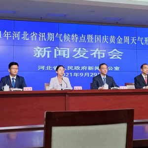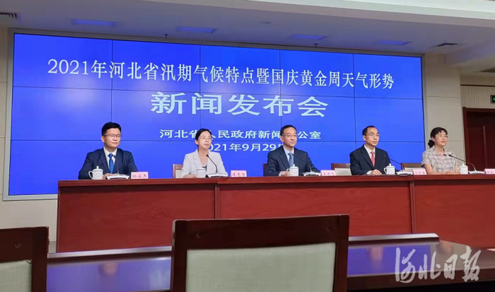 2021年河北省汛期气候特点暨国庆黄金周天气形势新闻发布会现场。 河北日报记者宋平摄