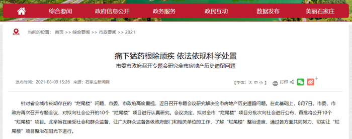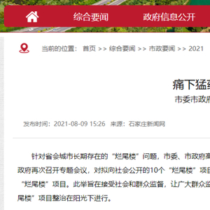 8月7日,石家庄召开专题会议决定,拟对全市“烂尾楼”项目分批次向社会进行公布,首批公开10个“烂尾楼”项目。第二批,也公布了10个;第二批8个,第四批7个,第五批9个……截至9月9日,石家庄“烂尾楼”项目已公布5批次,涉及44个“烂尾楼”项目。