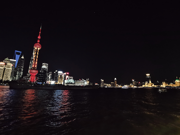 9月30日晚,国庆长假前夜,上海外滩氛围已足。夜幕降临,黄浦江畔两岸滨江大道灯光璀璨,建筑群灯火辉煌。