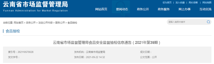 原标题:云南省市场监督管理局抽检食品2169批次 不合格21批次