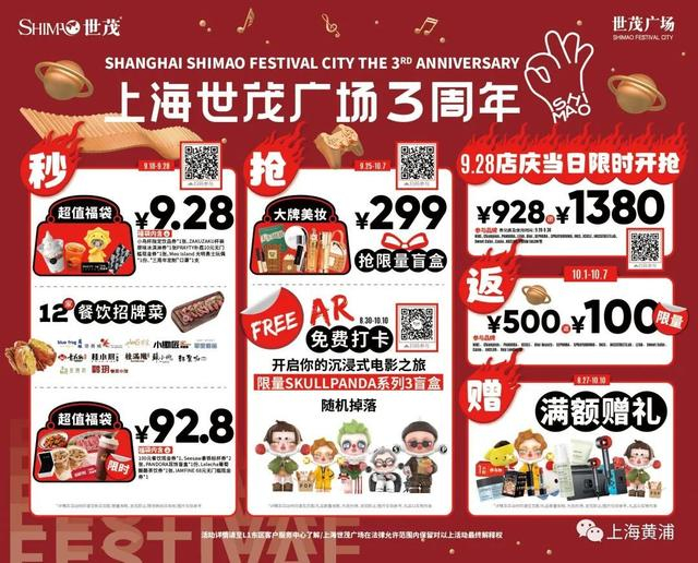 作为三周年庆力度最大的促销礼遇活动,“92.8元福袋秒杀购”活动于9月28日店庆当日限时开抢,内含100元餐饮券、Seesaw任意表杯券、PANDORA耳坠盲盒等超值好物。