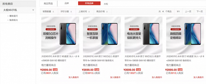 做手机同样如此,要想胜出就得凭“手艺”说话。比如华为凭着核心研发技术,始终占据一席之地,而没有核心技术的小米OV等手机厂商,就在供应链管理、市场销售管理、品牌打造等方面做到极致。反观格力手机,从2015年起先后推出了格力一代、格力色界、格力第三代、大松5G手机等产品,定着高端的价格,却搭载陈旧的系统,在使用体验和功能上,也无法满足用户变化的口味,仅仅靠着格力空调的品牌效应做营销,失败从一开始就注定了。目前在官方的“格力董明珠店”上,仅有一款大松5G手机在售,从去年12月上市以来,一共才卖出大约2.6万台。