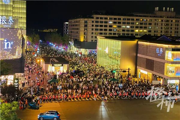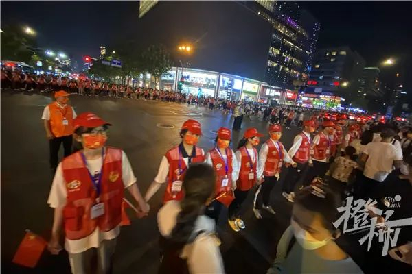 穿着红马甲的志愿者们手拉着手,指引游客们有序通行、注意安全,一开一合,循环往复。他们一边维护交通秩序,一边为游客解答疑问,为国庆假期市民游客的安全出行全力护航。