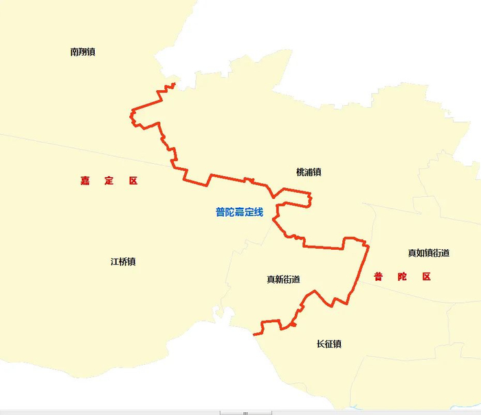 “普嘉线”是普陀区与嘉定区两区行政区域界线的简称,大致呈南北走向。起于普陀区、宝山区、嘉定区三区边界交汇点,沿线大致经真南路、金迎路、金通路、众仁路、京沪铁路、祁连山路、金鼎路、万镇路、吉镇路、延川路、花家浜路、棕榈路、金沙江支路,止于长宁区、普陀区、嘉定区三区边界交汇点,全长20.323公里,边界线代码为“0714”。
