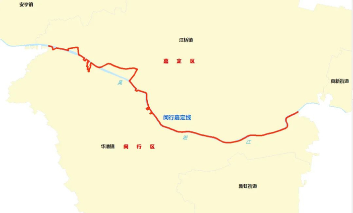 沿线涉及闵行区的华漕镇和嘉定区的江桥镇。