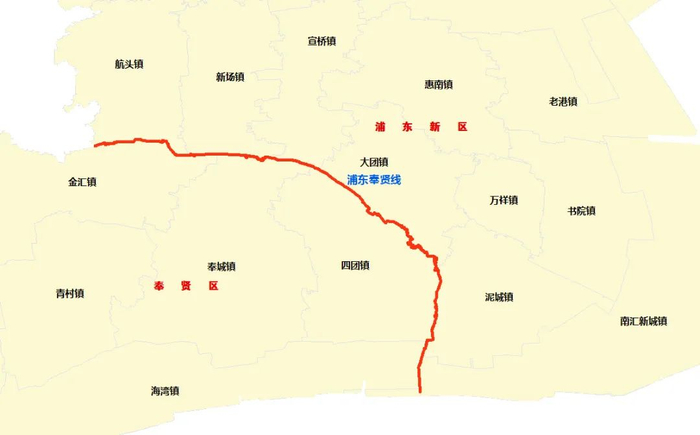 沿线涉及浦东新区的航头镇、新场镇、宣桥镇、大团镇、泥城镇、南汇新城镇和奉贤区的金汇镇、奉城镇、四团镇、海湾镇。
