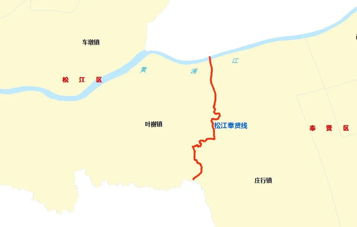 沿线涉及松江区的叶榭镇和奉贤区的庄行镇。