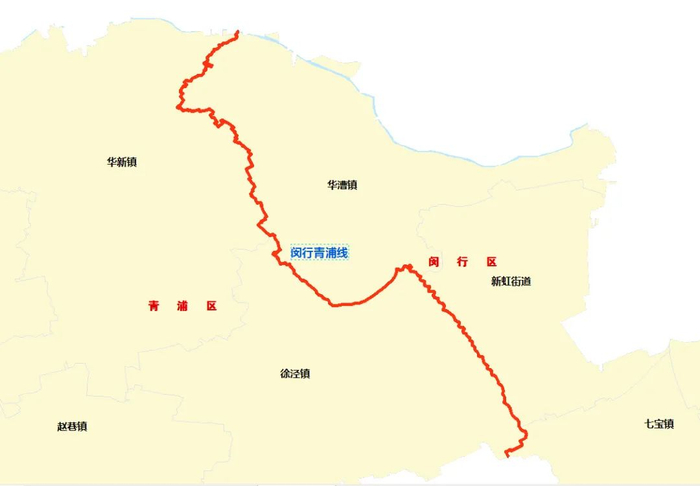 沿线涉及闵行区的华漕镇、新虹街道、七宝镇和青浦区的华新镇、徐泾镇。
